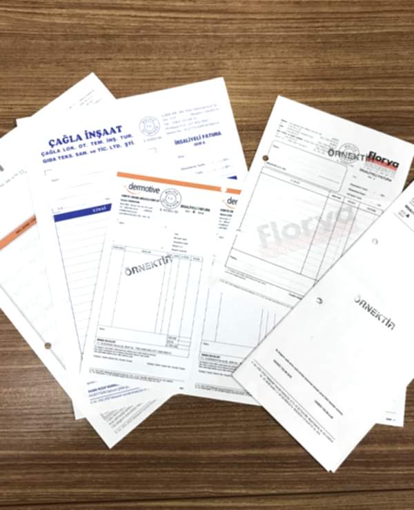 Fatura, İrsaliye, Gider Pusulası, Müstahsil Makbuzu, Reçeteler, Ambar Tesellüm Fişi, Satış Fişleri, Biletler, Adisyon, Döviz Alım/Satım Fişleri,Günlük Müşteri Listesi, Perakende Satış Fişi, Özel Fatura, Dip Koçanlı Giriş Bileti